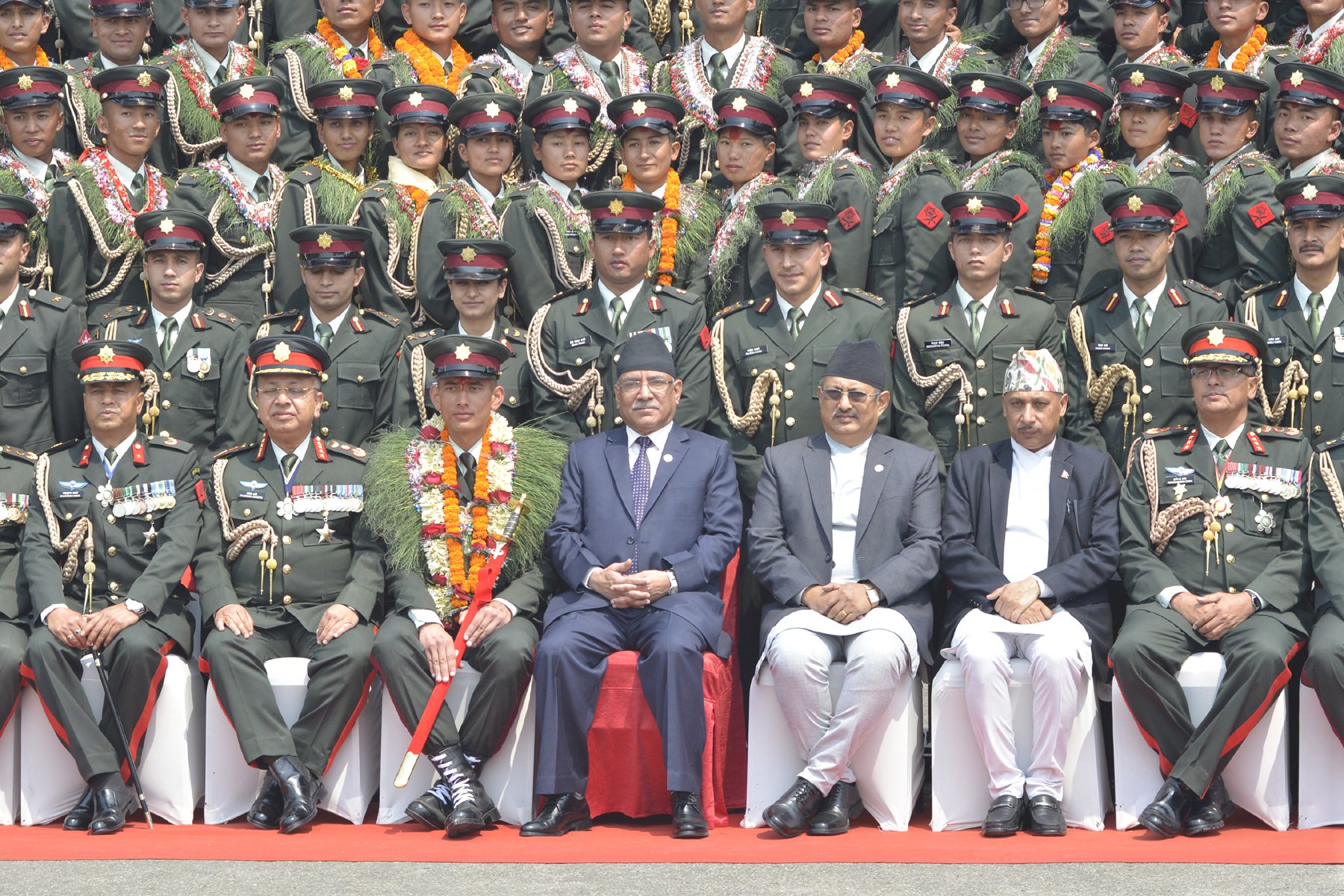 नव आयूक्त क्याडेट अधिकृतहरु, तपाईहरु आज गौरवमय इतिहास र प्रशंसनीय प्रतिष्ठा बोकेको विशिष्ट संस्था, नेपाली सेनाको अधिकृत पदमा आयूक्त हुन लाग्नुभएको छ । चौबिस महिनाको निरन्तर तथा अथक प्रयास र तपाईहरुको दृढ समर्पण, लगन र मेहनत पश्चात् अधिकृत क्याडेट तालिम सफलतपूर्वक सम्पन्न गरी नेपाली सेनाको योग्य अधिकृत बन्न सफल हुनुभएको छ । यस विशिष्ट क्षणमा तपाईहरुबाट भर्खरै प्रदर्शन गरिएको अत्यन्त फूर्तिलो र व्यावसायिकता झल्काउने कवाजको लागि म तपाईहरुलाई हार्दिक धन्यवाद दिन चाहन्छु ।