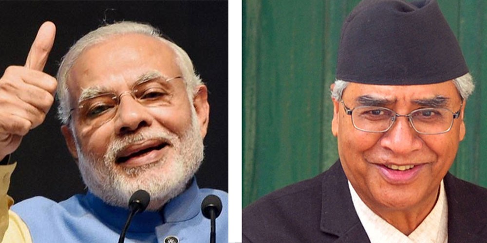 प्रधानमन्त्री चुनिएको केही बेरमा नै शेरबहादुर देउवालाई भारतीय प्रधानमन्त्री नरेन्द्र मोदीले टेलिफोन गरि बधाई तथा शुभकामना ब्यक्त गरेका छन् । भारतीय प्रधानमन्त्री मोदीले टेलिफोन गर्दै उनलाई कार्यकालको शुभकामना दिंदै आउँदा दिनमा गर्नुपर्ने कार्यको सफलताको कामना गरेका उनका स्वकीय सचिव भानु देउवाका अनुसार प्रधानमन्त्री मोदीले यहाँको कार्यकालमा नेपाल भारत सम्वन्ध थप उचाईमा पुग्ने विश्वास ब्यक्त गरेका थिए ।