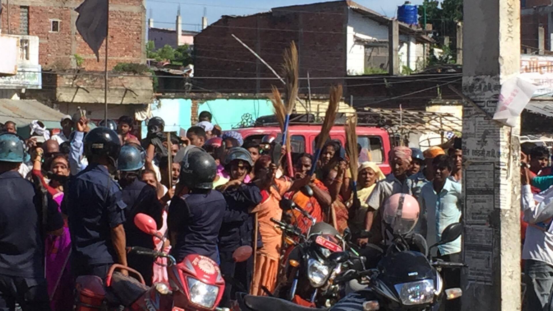 त्यसअघि माधव नेपाल, गोकर्ण बिष्ट लगायतका नेताहरुलाई उनीहरुले कालोझण्डा देखाएका थिए । राजपा कार्यकर्ताको ढुङगा लागि एकजना घाइते भएका छन ।