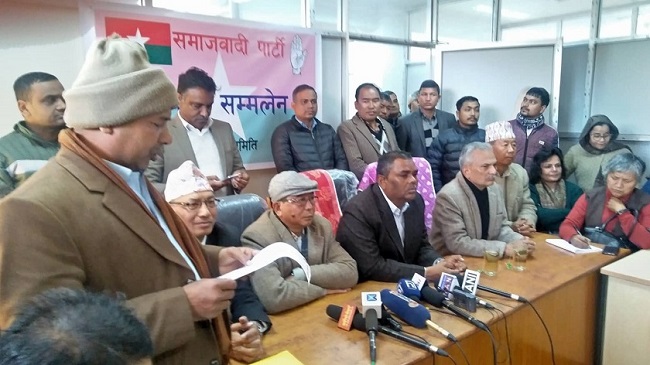 २०७६ पुस ०९, काठमाडौ । समाजवादी पार्टीले सरकारलाई दिएको समर्थन फिर्ता लिएको छ । बैठकलगत्तै पत्रकार सम्मेलनको आयोजना गरी सो पार्टीले सरकारलाई दिएको समर्थन फिर्ता लिएको घोषणा गरेको हो । बुधबार बसेको सो पार्टीको कार्यकारिणी बैठकले ओली नेतृत्वको सरकालाई दिएको समर्थन फिर्ता लिँदै संसदमा प्रतिपक्षीको भूमिकामा रहने निर्णय गरेको पत्रकार सम्मेलनमा जारी विज्ञप्तिमा जनाइएको छ ।