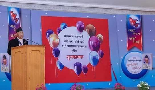 २०७६ फागुन ११, काठमाडौँ – प्रधानमन्त्री केपी शर्मा ओली जन्मदिन मनाउन जन्मस्थान तेह्रथुमको आठराई गाउँपालिका जाँदै छन् । प्रधानमन्त्री ओली जन्मदिन मनाउन आफ्नो क्षेत्रमा आउने भएपछि आठराई गाउँपालिकामा आइतबार स्थानीय सार्वजनिक बिदा दिएको छ । गाउँपालिकाले प्रधानमन्त्री ओलीले आफ्नो क्षेत्रमा विकास निर्माणका कामको शिलान्यास गर्ने भएकाले स्थानीय बिदा दिने निर्णय गरेको जनाएको छ । प्रधानमन्त्री ओलीले आइतबार ६९ औँ जन्मदिन मनाउँदै छन् र उनले यसपटकको जन्मदिन जन्मघर आठराईमा मनाउने भएका हुन । ओलीले आइतबार आठराईको छातेढुङ्गाको सुकेपोखरी, आफ्नो जन्मघर हुँदै ताप्लेजुङ्गको ढुङ्गेसाँघुस्थित मदन भण्डारीको जन्मघरसम्म जोड्ने मोटरबाटोको शिलान्यास गर्ने कार्यक्रम छ । यस्तै जन्मघरमा हुने कार्यक्रममा उनले नेपाल बैंकको शाखा कार्यालय उद्घाटन गर्ने छन् ।