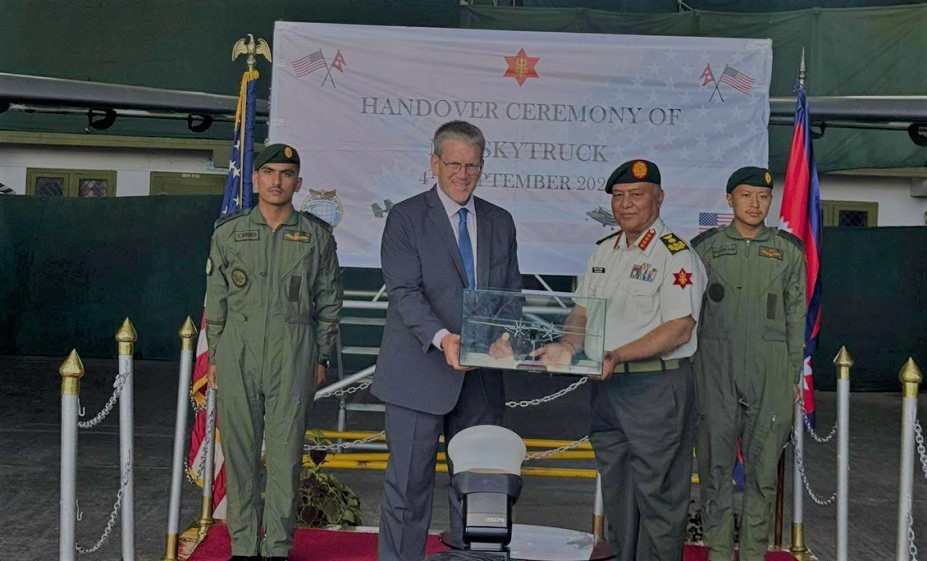 काठमाडौं, भदौ १९ – नेपाल र अमेरिकाबीचको सैनिक सहकार्य थप सुदृढ हुने संकेतस्वरूप अमेरिकाले नेपाली सेनालाई एकवटा स्काई ट्रक (Sky Truck) विमान र एकवटा एयर एम्बुलेन्स हस्तान्तरण गरेको छ। एक समारोहबीच अमेरिकी दूतावासले यो सहयोग औपचारिक रूपमा नेपाली सेनालाई हस्तान्तरण गरेको हो।