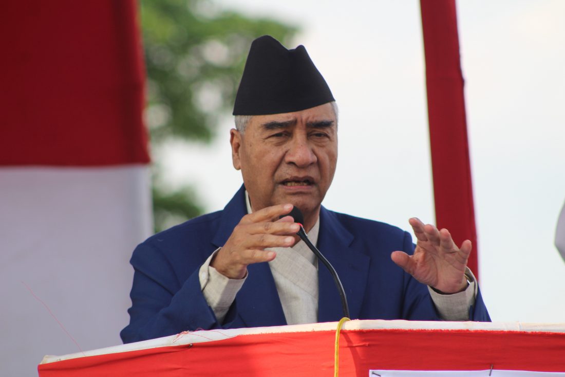 काठमाडौं । नेपाली कांग्रेसका सभापति तथा पूर्वप्रधानमन्त्री शेरबहादुर देउवाले मुलुकमा उत्पन्न परिस्थितिको समाधान संविधानभित्रैबाट खोज्नुपर्ने बताएका छन् ।